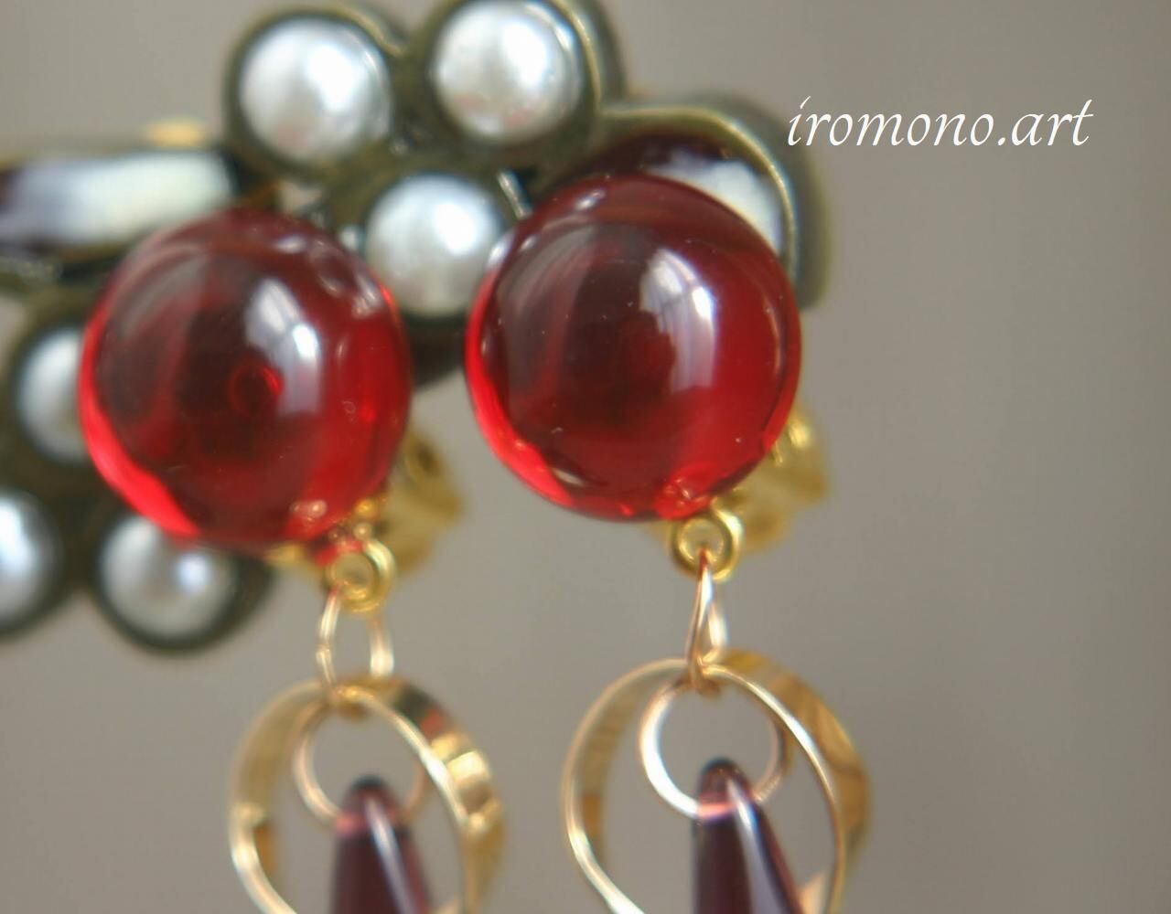 透明感のあるレッドが美しい上品なイヤリングです^^