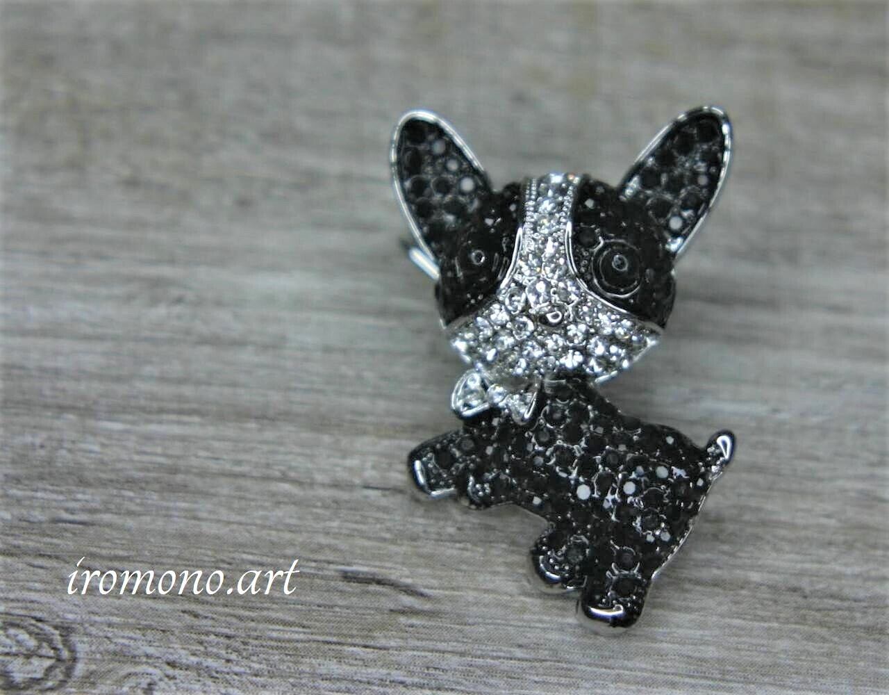 キラキラと輝くフレンチブルドックをモチーフにした大人可愛いブローチ。