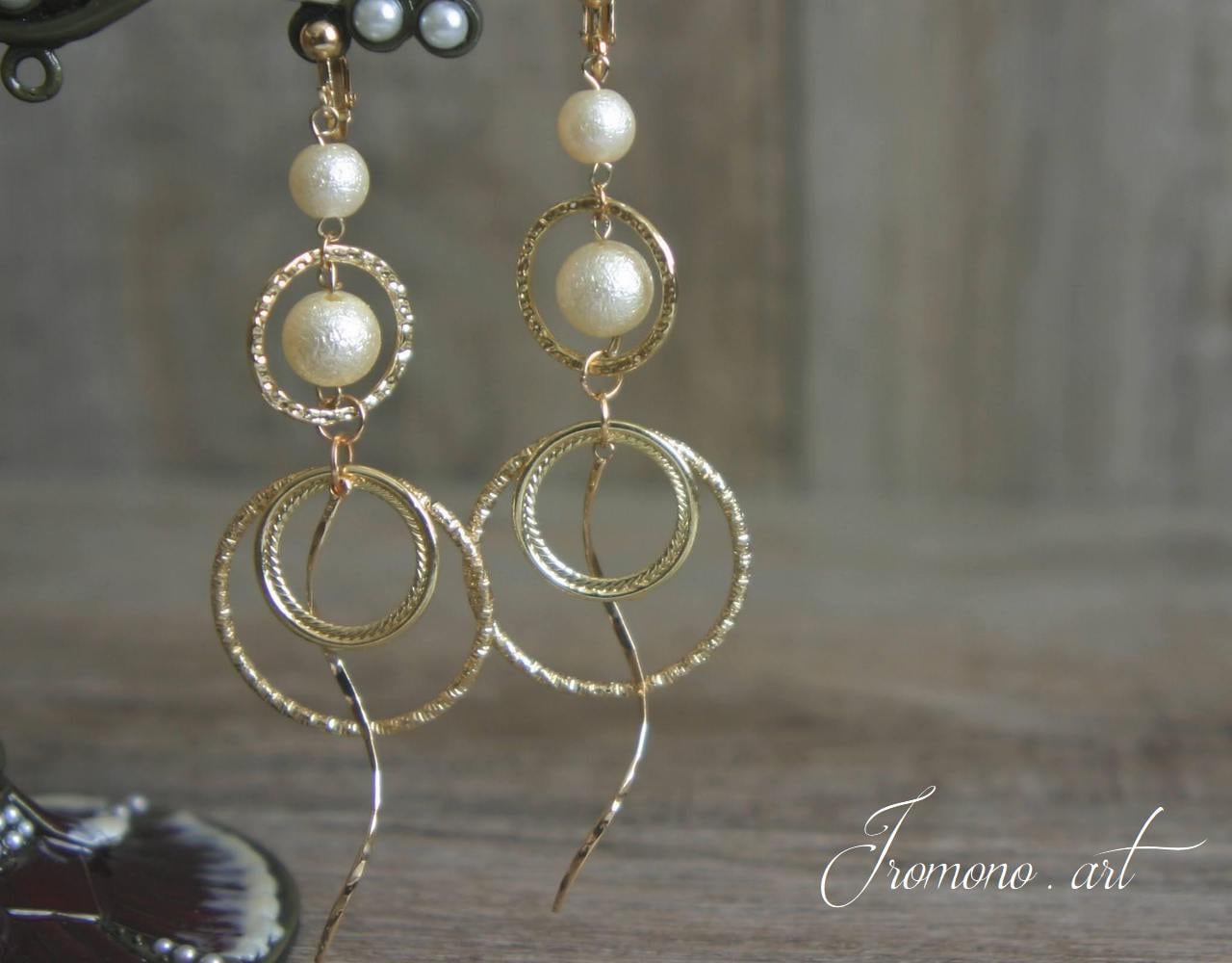 ゴールドとパールをゴージャスに組合わせたデザイン。耳もとを華やかにして気持ちも華やかに♪